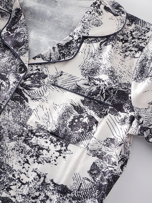 Slip into celestial comfort with our Luna Satin Dream Pajama Set, where buttery-soft satin meets effortless elegance. The short sleeves and relaxed fit create a cloud-like embrace, while the delicate pearlized finish adds a moonlit glow to your nighttime ritual. Designed with hidden stretch panels for unrestricted movement, this is sleepwear that makes every night feel like a luxury retreat.