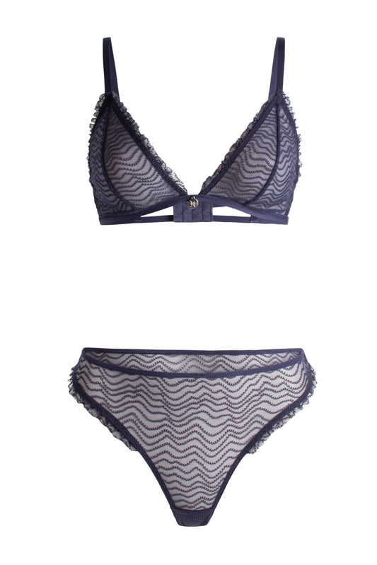 Sexy lingerie PISCES Wavy Midnight Blue Bra & Thong Panties underwear Set