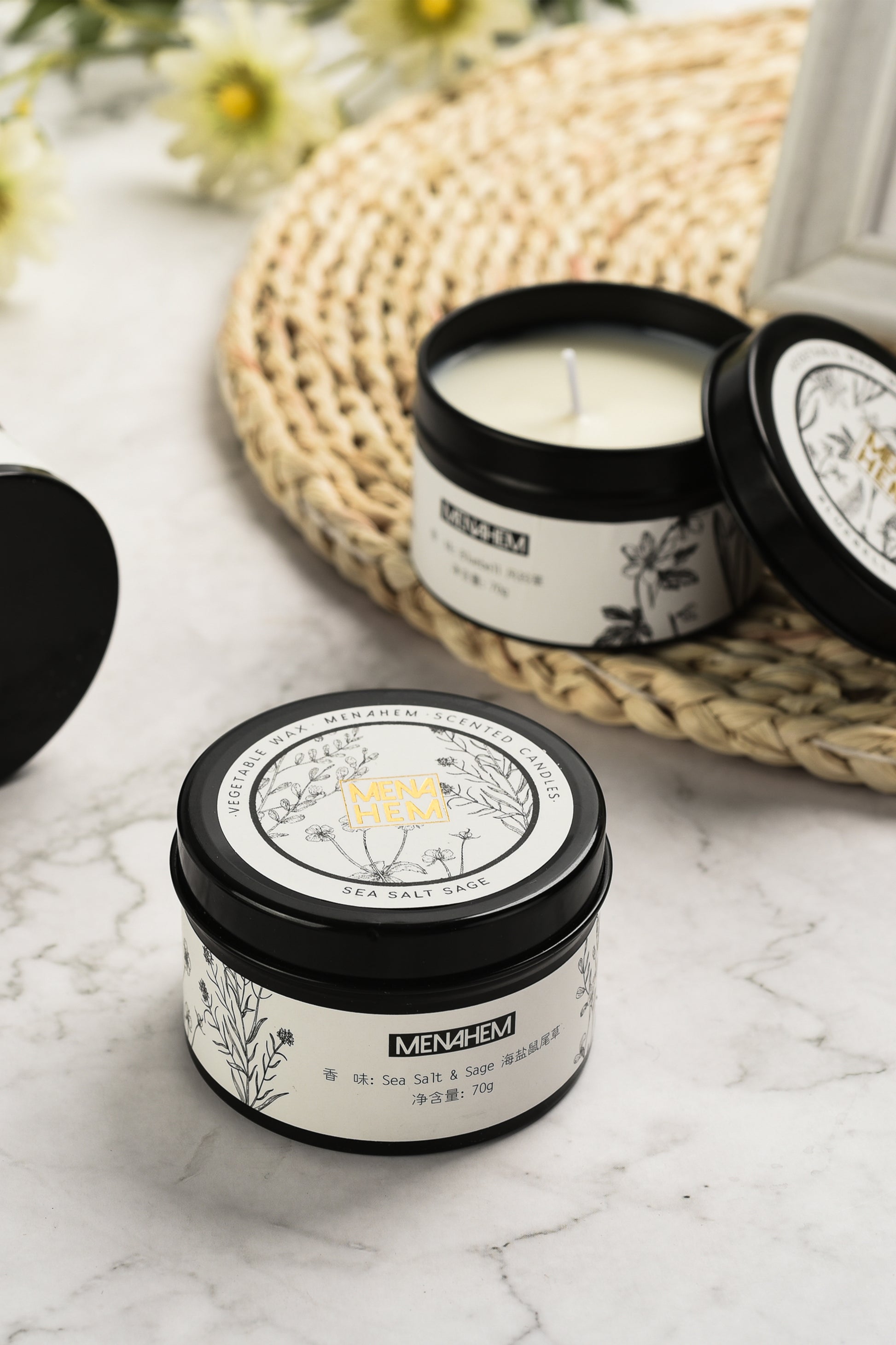 This sleek, chic metal tin candle is made with premium with soy wax. Each tin has straight + smooth sides for a seamless look.