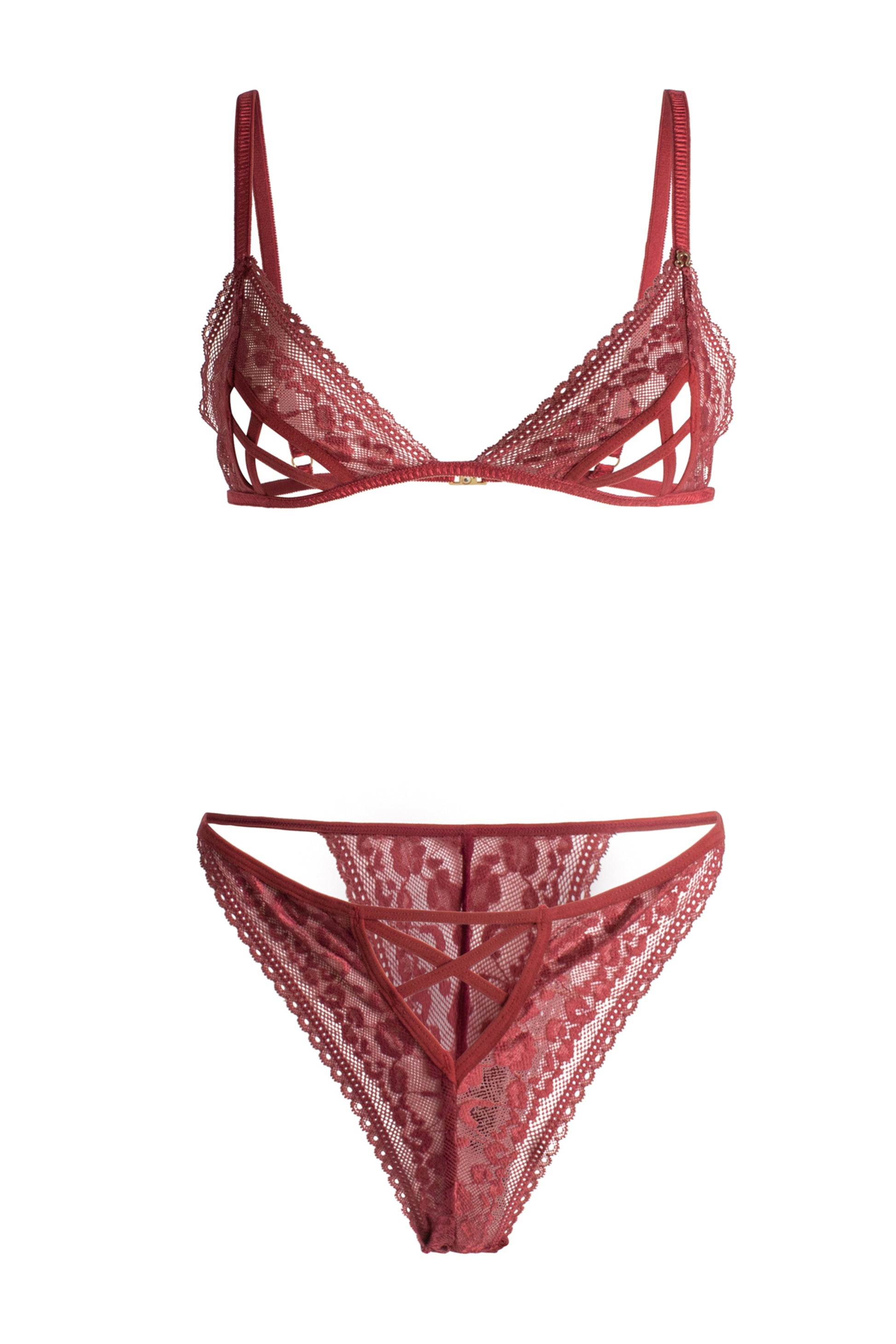 Sexy lingerie LEO Burgundy Lace Bra & Panties underwear Set