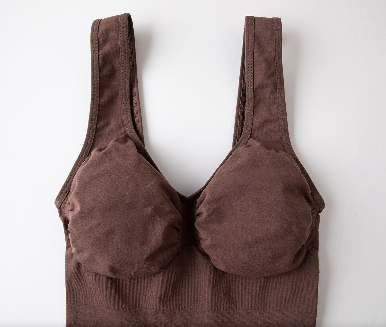 Experience everyday ease with the Comfort Lift Padded Tank Bra. Designed with wide straps and soft molded cups, this wire-free essential offers gentle lift and support while staying breathable and stretch-friendly. A must-have layer for lounging, layering, or low-impact activities.