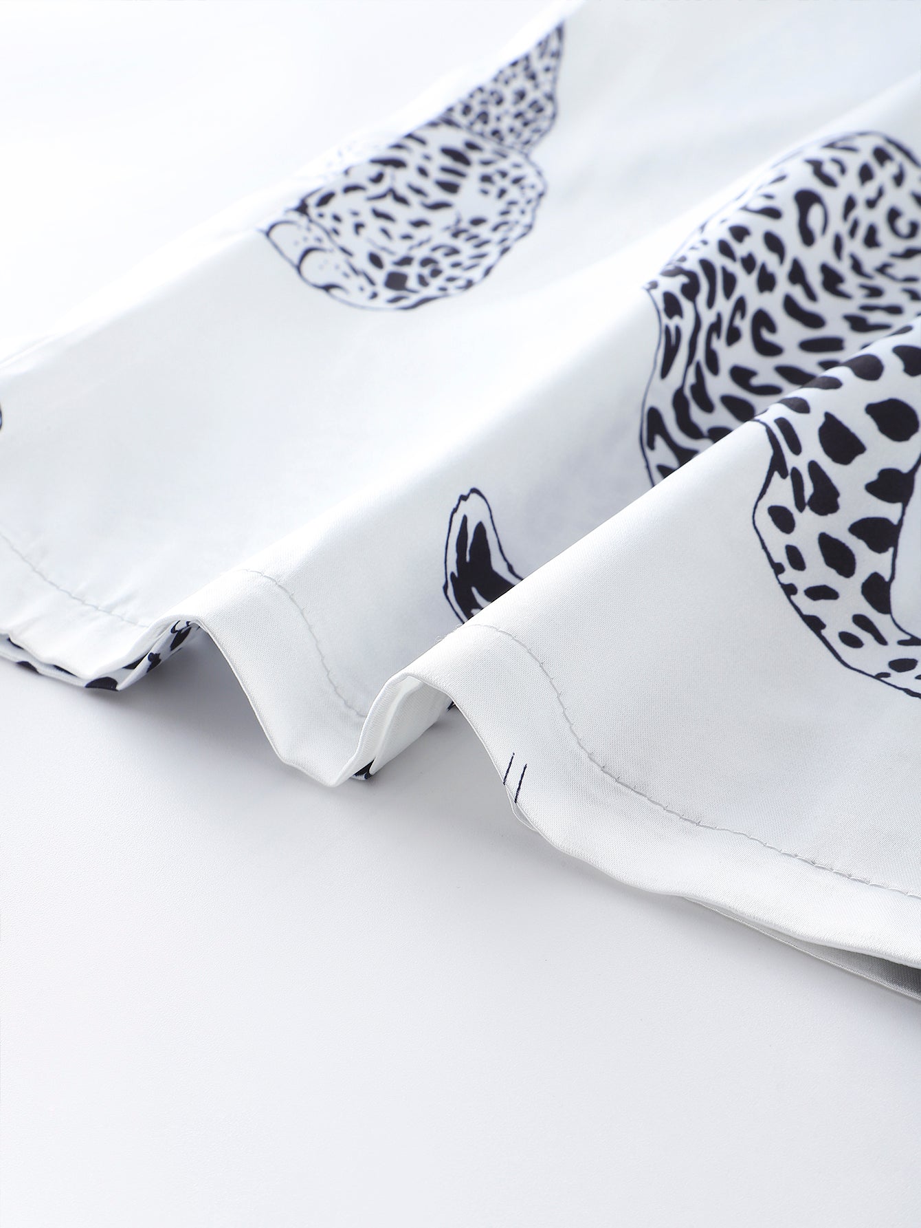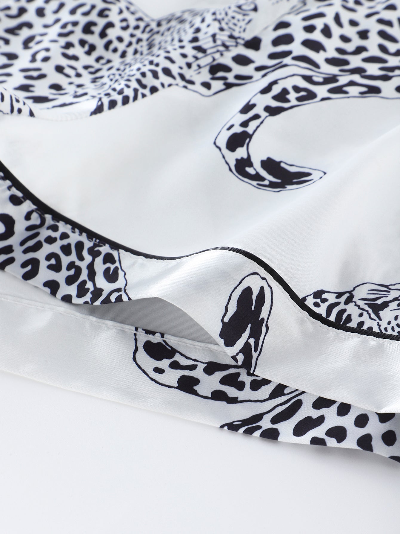 Unleash your inner fierceness with this Wild Elegance Satin Pajama Set. Designed with a bold yet sophisticated black-and-white leopard print, this short-sleeved satin ensemble combines luxury with comfort. The silky smooth fabric drapes effortlessly, providing a breathable and lightweight feel for a restful night's sleep. The relaxed fit, button-up top, and elastic waistband shorts ensure both style and ease of movement. Perfect for lounging in style or adding a touch of glamour to your bedtime routine.